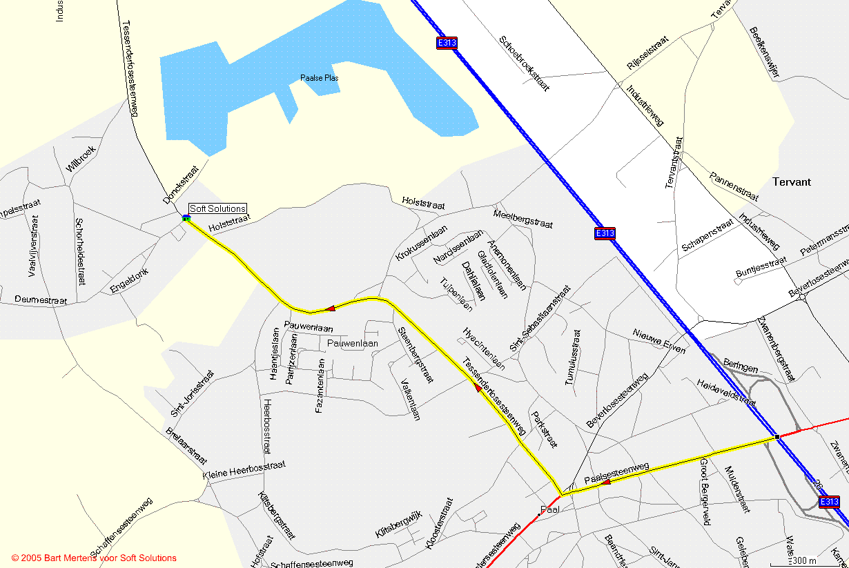 Gedetailleerde kaart vanaf de autosnelweg naar Soft Solutions,